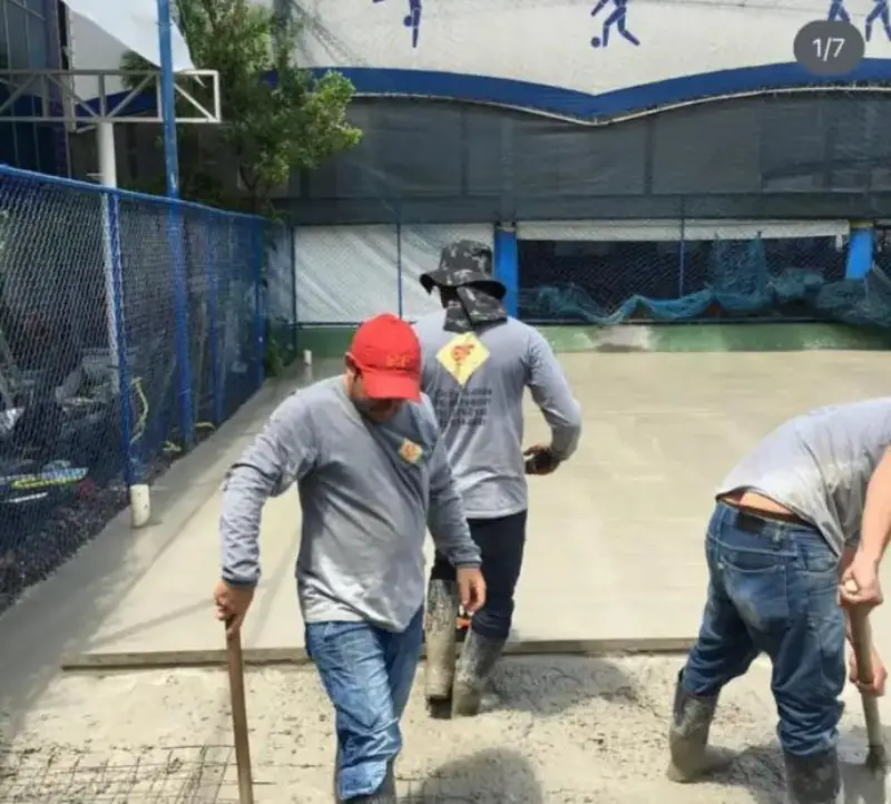 Além disso, é feito um controle rigoroso da umidade do solo e do concreto, evitando problemas futuros e cuidando da aderência e resistência do revestimento.
